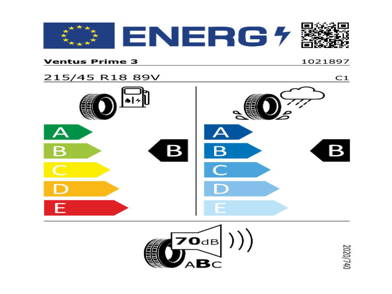 Bereifung Hankook VentusPrime3 215/45 R18 89V B;B;70dB